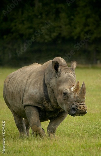 Fototapeta premium White Rhinoceros, ceratotherium simum, Adult standing on Grass