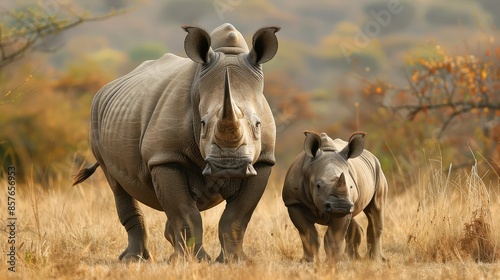 © Luxetify, Obraz premium White rhinoceros (Ceratotherium simum) and calf