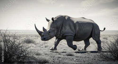 © ArkaGPT, Fototapeta premium White Rhinoceros Charging Across African Savanna Wildlife Conservation