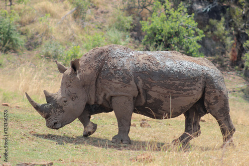 © Riaan Albrecht, Naklejka premium White rhinoceros covered in mud