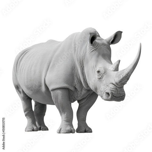 Fototapeta premium White rhinoceros monochrome image isolated on transparent background