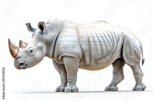 Fototapeta premium White rhinoceros standing against a plain white background