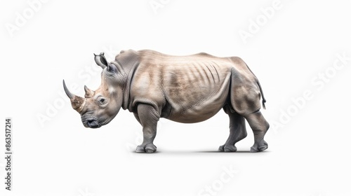 Fototapeta premium White Rhinoceros Standing Against a White Background