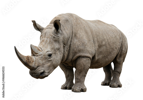 © AI-Universe, Obraz premium White Rhinoceros Standing on Plain Background