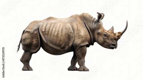 Fototapeta premium White Rhinoceros Standing on White Background