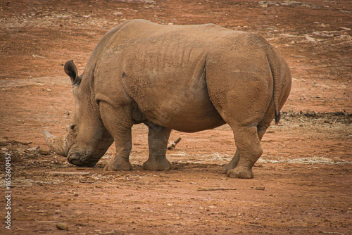 © Christine, Fototapeta premium White Rhinoceros with Head Lowered, Foraging