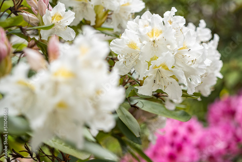 © lapis2380, Fototapeta premium White rhododendron flowers outdoors in nature.