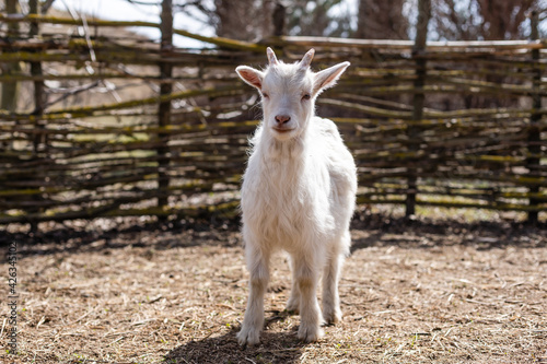 © Angelov, Obraz premium white ridiculous kid is grazed on a farm, on a green grass