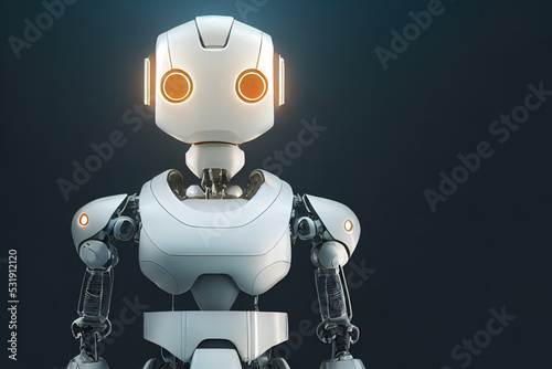 © Fortis Design, Naklejka premium White robot. Futuristic cyborg. 3D render illustration of a modern tech ai. Artificial intelligence android concept. Technology cybernetic automaton companion.