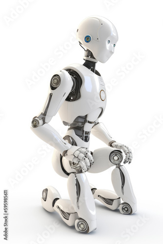 Fototapeta premium White robot kneeling isolated on a white background Generative AI