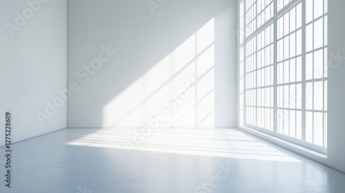 © 沈军 贡, Fototapeta premium White room with a window and light shadow on the floor