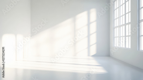 © 沈军 贡, Fototapeta premium White room with a window and light shadow on the floor