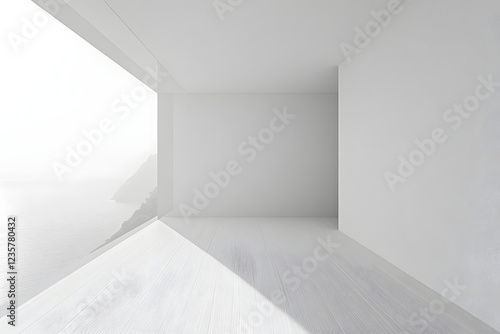 © DeepView, Obraz premium White Room with Ocean View Rendering