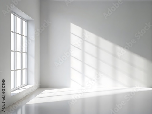 © nilawan, Obraz premium White Room with Window and Sunbeams.