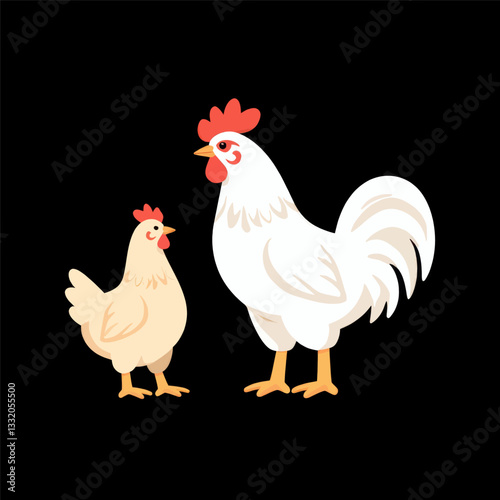 © TTh, Fototapeta premium White rooster and tan hen illustration facing the same direction