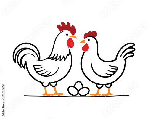© Shekhar.b2d, Fototapeta premium White rooster hen and eggs farm poultry.