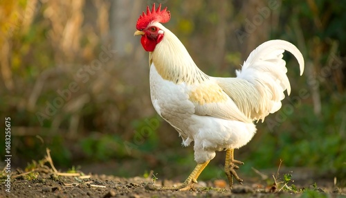 Fototapeta premium White rooster in a field