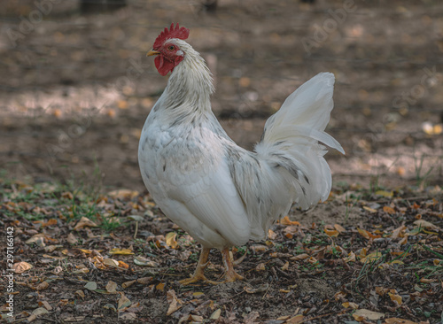 Fototapeta premium White rooster on a farm
