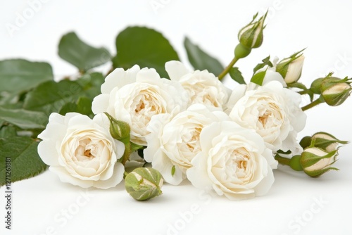 © Sami, Obraz premium White Roses Displayed on a Simple White Background.