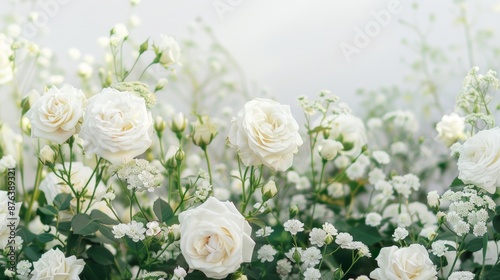 Obraz premium White roses flowers isolated on white background design element wallpaper...
