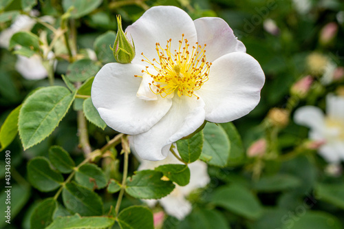 Obraz premium White roses in the flower garden
