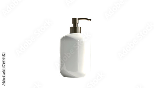 Fototapeta premium White, rounded liquid dispenser with dark pump on black backdrop