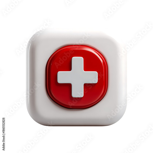 Fototapeta premium White rounded square with red circle and white cross medical symbol isolated on a transparent background