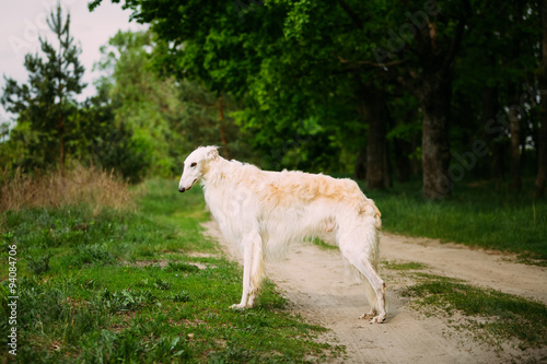 Fototapeta premium White Russian Wolfhound Dog, Borzoi, Hunting dog, Sighthound sta