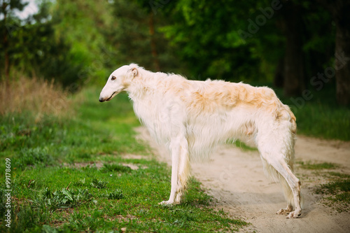 © Great Brut Here, Obraz premium White Russian Wolfhound Dog, Borzoi, Hunting dog, Sighthound sta