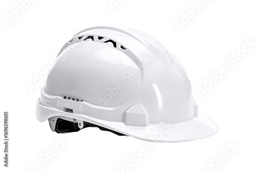 © Nad, Fototapeta premium White safety hard hat, angled view. Glossy finish