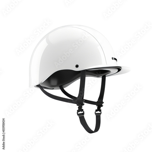 Fototapeta premium White safety helmet with chin straps, perfect for construction and industrial...