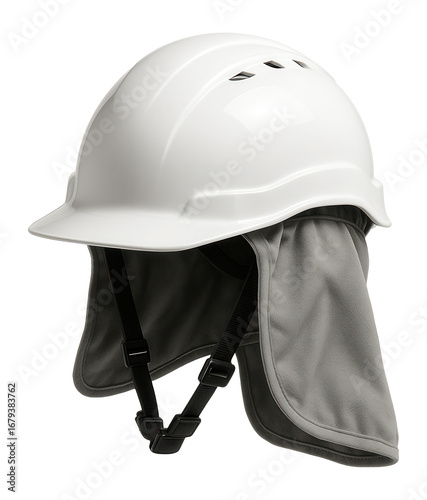 Fototapeta premium White safety helmet with neck protector