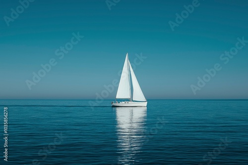 Fototapeta premium White Sailboat on a Calm Blue Sea