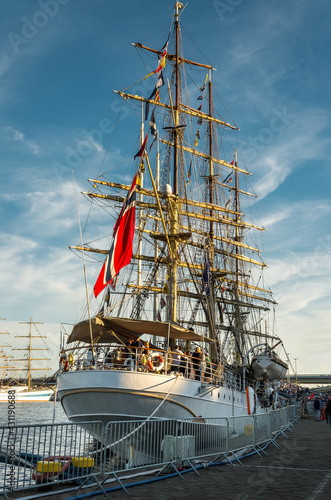© Robert, Fototapeta premium white sailing ship moored in the port