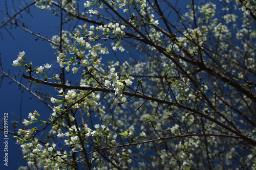 Fototapeta premium White Sakura flower in nature Background.