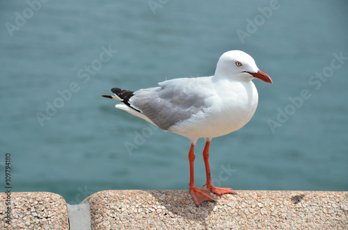 © babetka, Fototapeta premium White seagull sitting on a pier