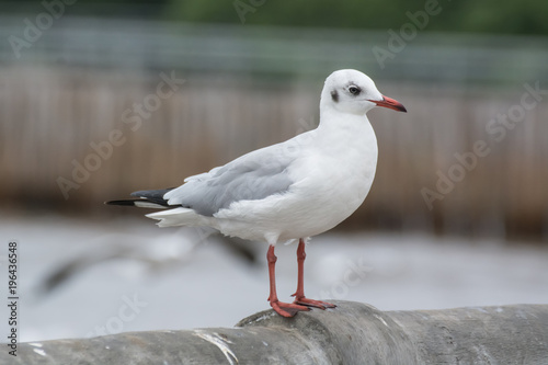 © thepartofx29, Naklejka premium White seagull standing on the bridge