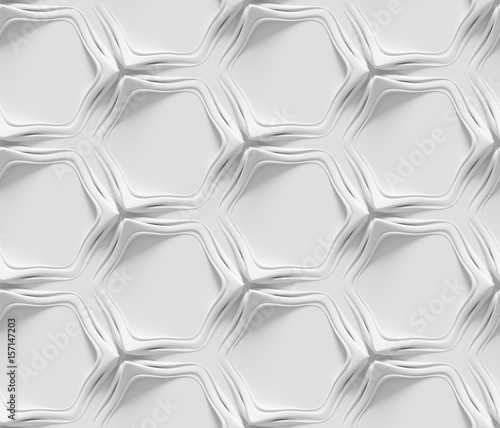 © Formfrom.design, Fototapeta premium White seamless geometric texture. Origami paper style. Hexagonal elements. 3D rendering background.