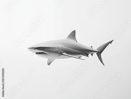 Fototapeta premium White shark is swimming in the ocean. The shark is large and has a menacing look on its face. Concept of danger and power, as the shark is a formidable predator in the ocean