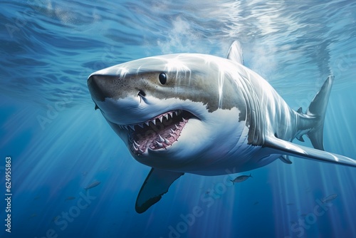 © Kay, Naklejka premium white shark swimming in the ocean | Generative AI