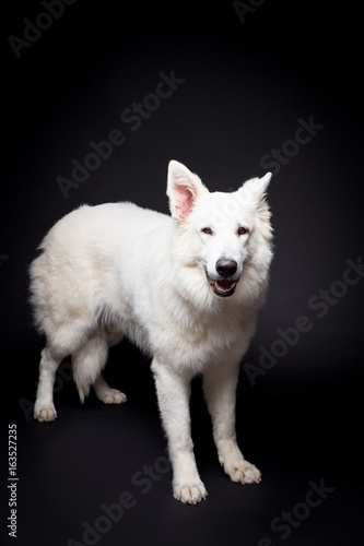 Obraz premium White Shepherd on the black background