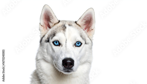 © Damang, Obraz premium White Siberian Husky Dog Portrait with Striking Blue Eyes