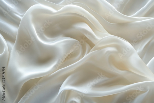 © Veronika, Obraz premium White silk fabric draped elegantly over a wooden chair in soft natural light.