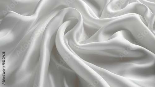 © Anna Shuliatieva, Obraz premium White silk or satin fabric texture background, abstract soft flowing wavy smooth elegant material