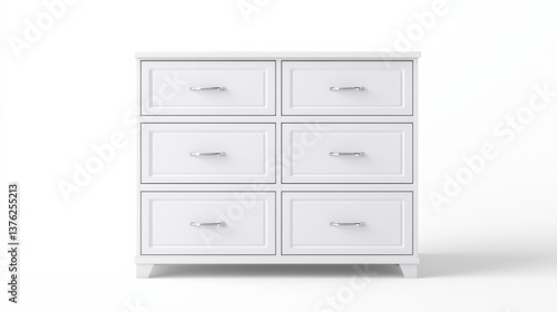 © Nana, Fototapeta premium White Six Drawer Wooden Dresser on White Background