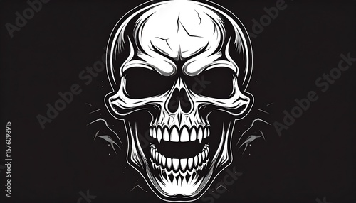 © Ayo, Fototapeta premium White skull, wide open mouth, dark background