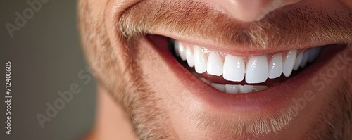 © Wuttichai, Obraz premium White smile of young man showing healthy tooth and mouth dentistry in dental care background happy face with clean whitening cheerful beauty laughter perfect fresh oral health handsome guy in clinic