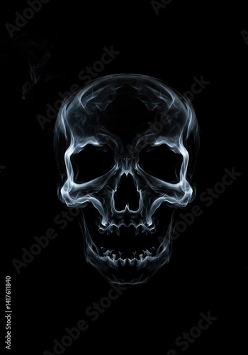 © LSH, Fototapeta premium White smoke forming into a shape of detail human skull on dark background