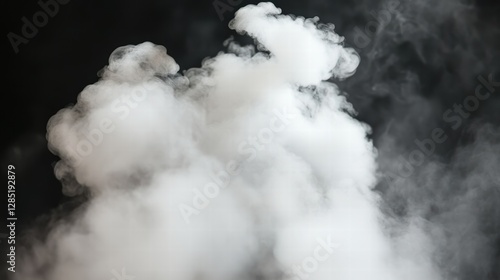 © patungkead, Obraz premium White Smoke Puffs and Fog Dramatic Effect Against Black Background Ideal for Overlay or Background Use in Design Projects