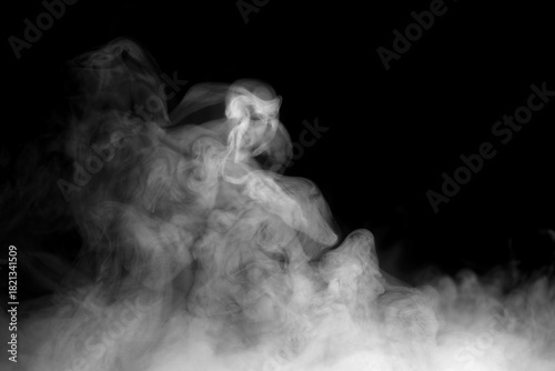 © DawStar, Naklejka premium white smoke steam spray, and abstract vapor water isolated on a black background. concept of texture cold mist or hot vapor, fog effect, and cloud for design air pollution, element smog